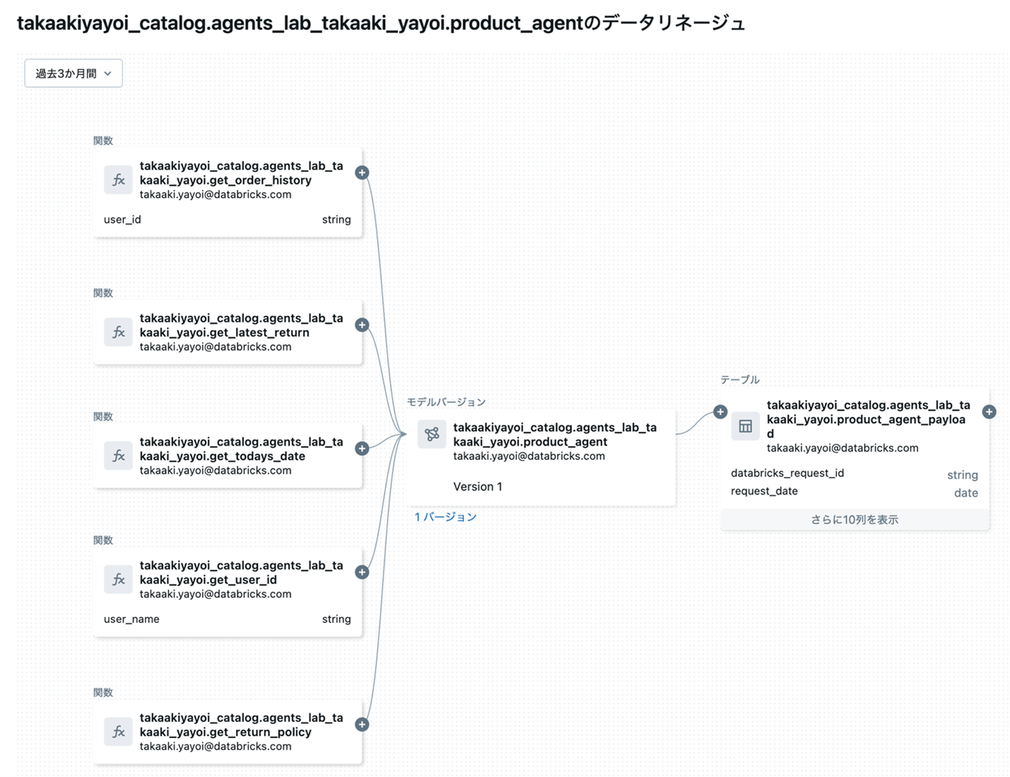 一方、AIモデル自体のガバナンスも重要な課題です。データへのアクセスを民主化するだけでなく、AIモデルの開発・デプロイ・運用においても、適切なガバナンスが必要になります。具体的には、誰がどのようなモデルを開発し、どのような検証を経て、どこにデプロイされているかを追跡する「AIモデルのリネージ管理」が求められます。これは、データのリネージ管理と同様に、AIシステムの透明性と信頼性を担保する上で欠かせない要素です。なお、Databricksで管理されるデータ、AIモデルのリネージは自動で捕捉され、簡単に関係性を把握できます。